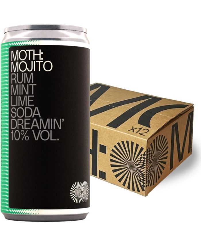 The MOTH Mojito 12x200ml is your instant getaway to fresh, fizzy, feel-good flavour. Made with Duppy White Rum by The Duppy Share, real lime juice, and garden mint, it’s a bold, balanced twist on the Cuban classic. Zingy, light, and lightly sparkling, it’s expertly mixed to deliver a crisp cocktail experience in every can. Vegan and effortlessly drinkable, this Mojito is ideal for sunny socials, fridge-friendly convenience, or bringing a splash of summer to any day. With 10% ABV, it’s all the flavour, none of the faff. Just chill, crack open, and enjoy — MOTH has done the mixing for you.